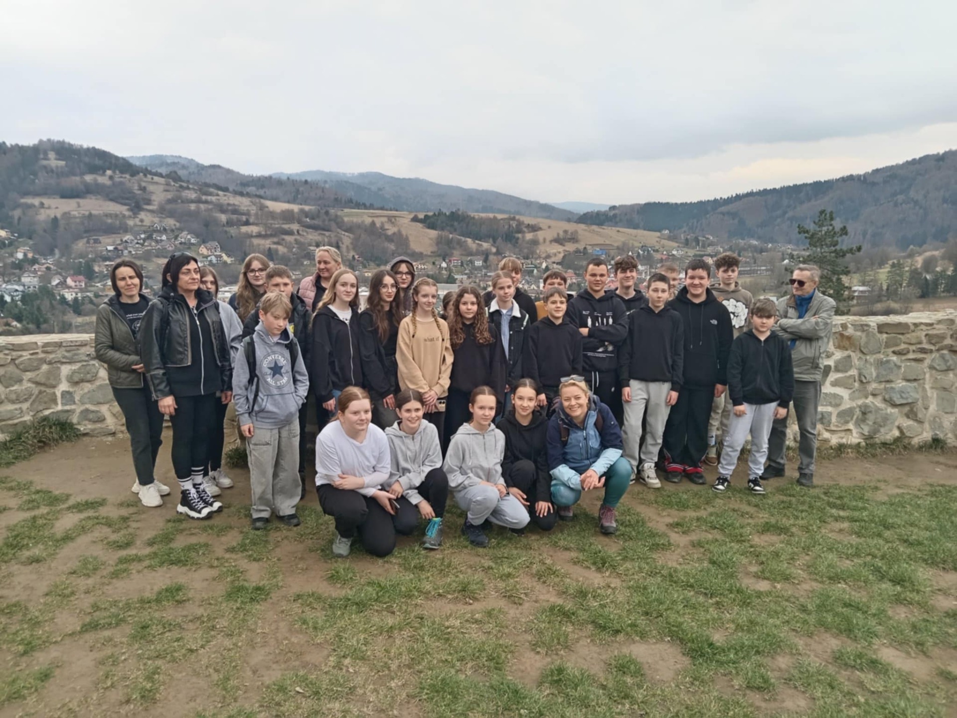 W sobotę, 29.03.2025r. pojechaliśmy autokarem do Starego Sącza, Muszyny i Krynicy w składzie 25 uczniów – członków naszego koła. Pogoda nas nie rozpieszczała, niestety było pochmurnie, ale na szczęście ciepło. Największą atrakcją było dla nas Leśne molo na Górze Parkowej w Starym Sączu. Niestety ze względu na pogodę widok z góry na okolicę był ograniczony. W Woli Kroguleckiej mogliśmy znowu podziwiać panoramę, tym razem ze ślimaka – niższej platformy widokowej. W Muszynie kolejny piękny widok na Beskid Sądecki rozciągał się z placu zamkowego. Naszą wycieczkę zakończyliśmy ostatnim punktem w Parku Zdrojowym w Krynicy. Ta wycieczka kosztowała nas tylko trochę dobrej woli, aby w sobotę zwlec się z łóżka około godziny 07.00 rano, bo cały przejazd był sponsorowany. Ale naprawdę było warto… Czekamy na kolejne wyzwania, które pozwolą nam docenić piękno Beskidów.